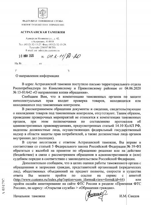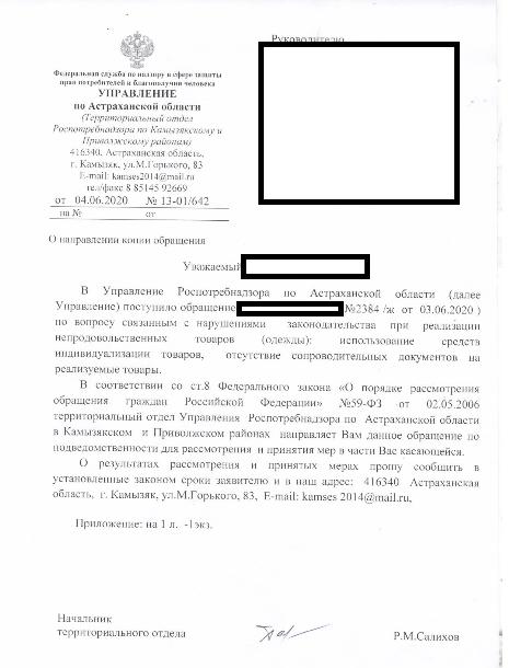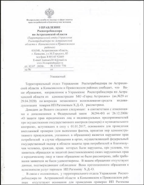 айГражданинОтправлено 14.09.2020: "Управление Федеральной службы по надзору в сфере защиты прав потребителей и благополучия человека по Астраханской области"