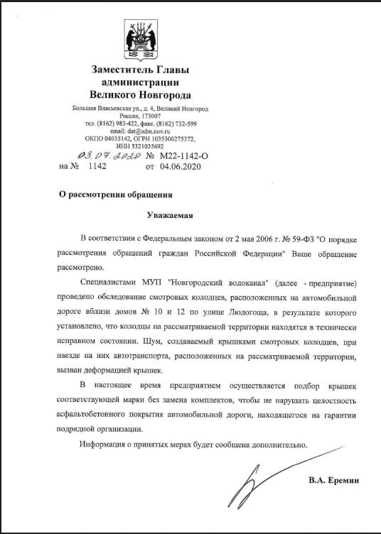 айГражданинОтправлено 03.06.2020: "Администрация г.Великий Новгород"
