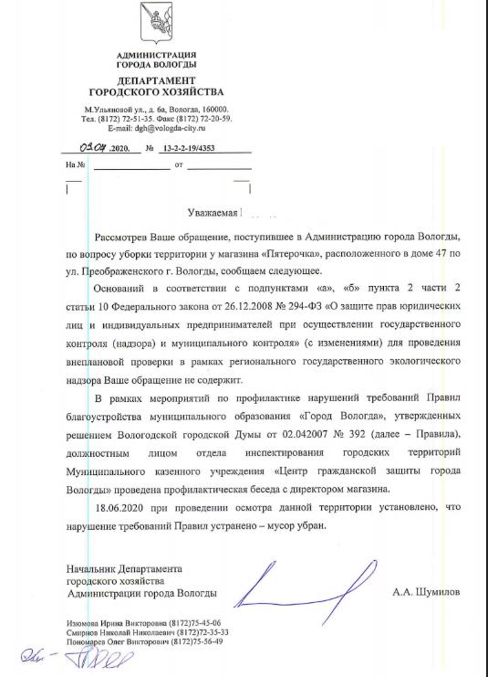 айГражданинОтправлено 10.06.2020: "Администрация города Вологды"