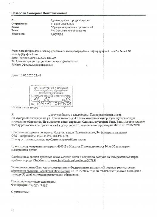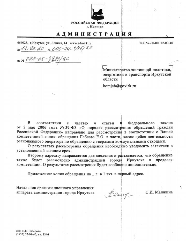 айГражданинОтправлено 10.06.2020: "Администрация города Иркутска"