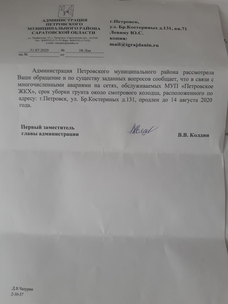 айГражданинОтправлено 12.08.2020: "Администрация Петровского муниципального района Саратовской области"