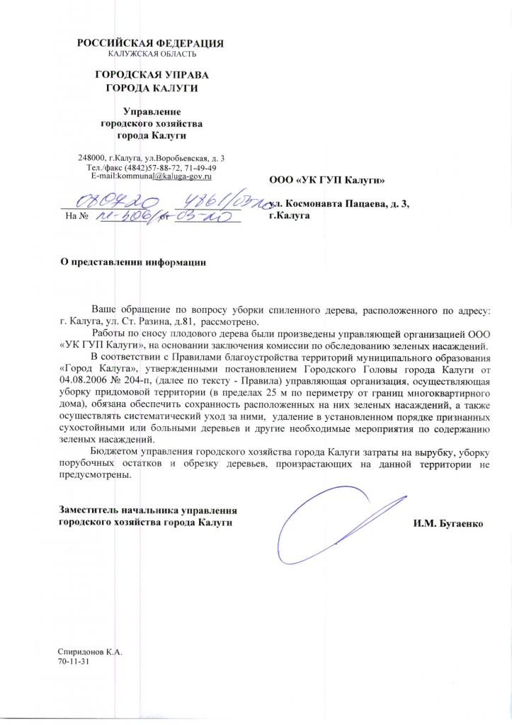 айГражданинОтправлено 15.06.2020: "Управление городского хозяйства города Калуги"
