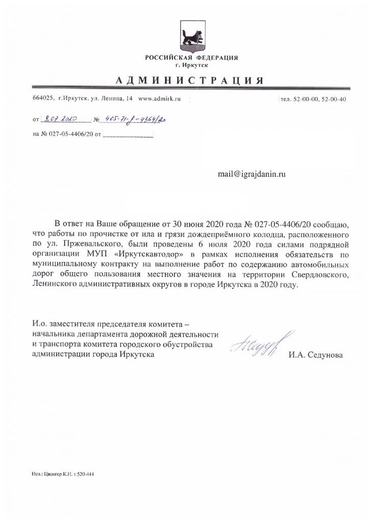 айГражданинОтправлено 28.06.2020: "Администрация города Иркутска"