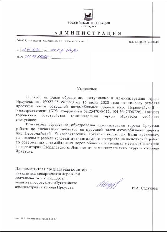 айГражданинОтправлено 30.06.2020: "Администрация города Иркутска"