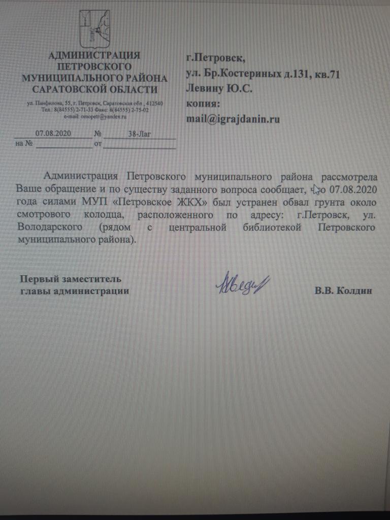 айГражданинОтправлено 09.07.2020: "Администрация Петровского муниципального района Саратовской области"