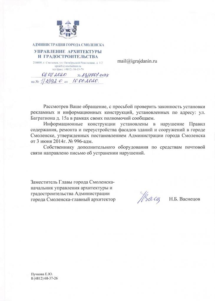 айГражданинОтправлено 06.09.2020: "Администрация города Смоленска"