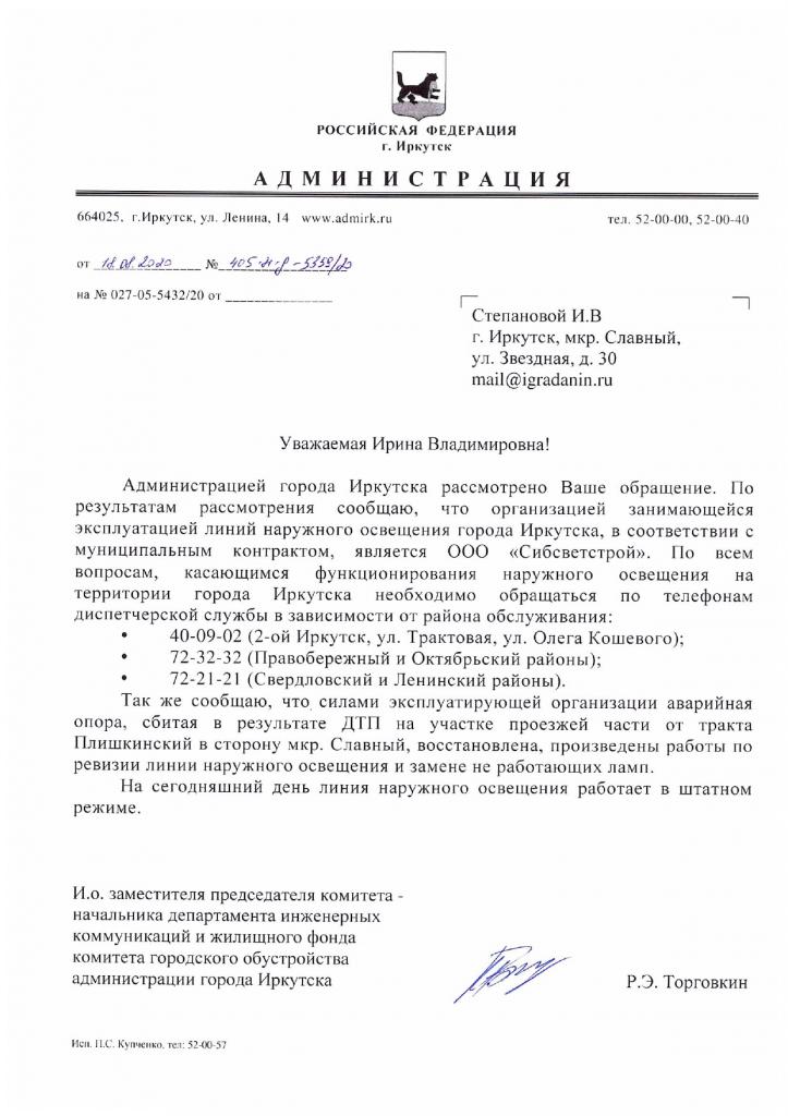 айГражданинОтправлено 27.07.2020: "Администрация города Иркутска"