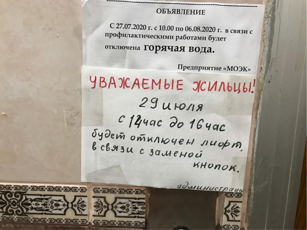 Сергей Петрович Счастливовподобные объявления и это тоже вывешиваются в подъездах внезапно, в день отключения. кто то мог не заметить и выйти из дома. например мама гулять с ребёнком. а вернуться не сможет