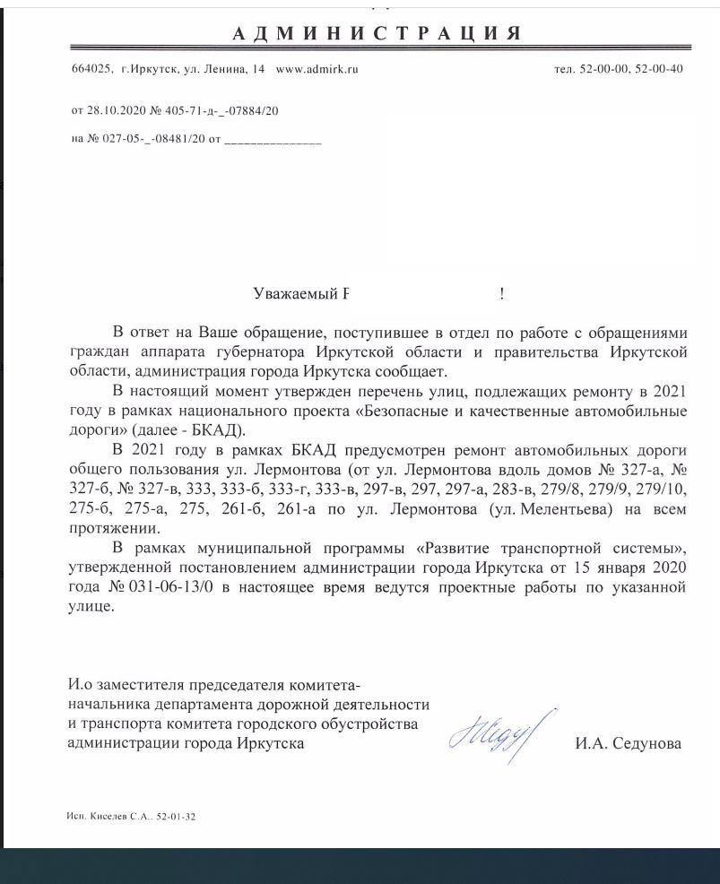 айГражданинОтправлено 24.09.2020: "Администрация города Иркутска"