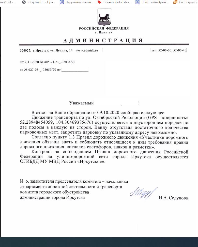 айГражданинОтправлено 08.10.2020: "Администрация города Иркутска"