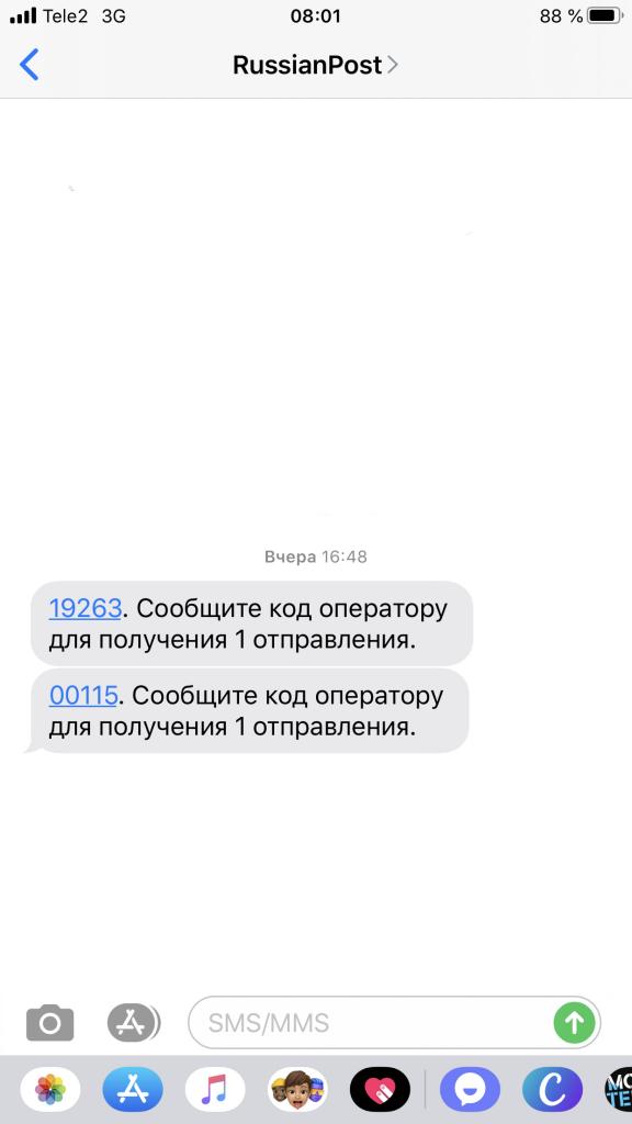 Ксения ЧЕще в добавление к моей проблеме. Получала на на неделе письмо, сотрудник почты попросила уведомление, я заполнила уведомление, отдала, следом попросили номер телефона и на телефон пришли аж две смс (фото во вложении, принт скрин с телефона, с кодами смс, которые пришли для получения одного письма), которые также обе попросили озвучить. Может я что-то не понимаю, но для чего так много всего для получения одного письма? И как при таких действиях сотрудников почты пользователю услуг быть уверенным, что получить я должна была только одно письмо, а не три, судя по количеству операций?