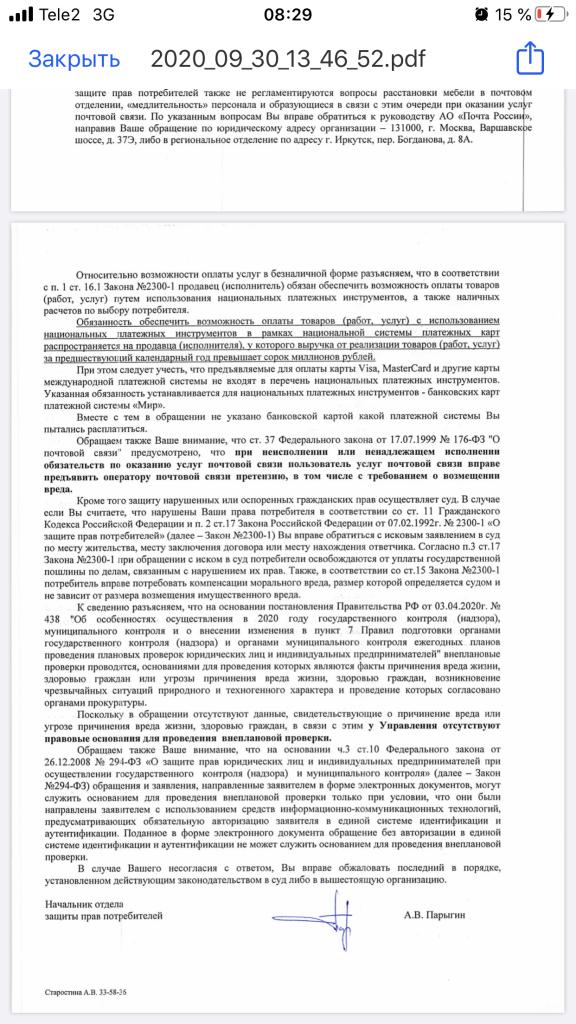 Ксения ЧПришла отписка от органов власти! Вы даже невнимательно читаете обращения граждан, про «оконные проемы» в моем письме ничего не говорилось, читайте внимательно! «Окно» имеется ввиду место где располагается сотрудник. Если бы вы действительно работали, а не отписки писали, то вы бы проверили «Книгу жалоб» в этом отделении и для интереса посмотрели бы социальные сети, там миллион жалоб по этому поводу на которые руководство почты даже не удосуживается отвечать! В свою очередь жалобу руководству почты отправлена уже давно и результатов пока не вижу. Нужно решать эти проблемы администрации города совместно с руководством почты. Потому что почта эти проблемы не решает, а создает только видимость и решения и работы! Проблема существует не год, она тянется годами. Какая разница какой картой я расплачиваюсь! Но если бы в этом было дело и сотрудник почты спросил бы меня об этом, я бы расплатилась той платежной системой, которая удобна отделению почты! И на счет патриотизма почта носит имя «Почта России» , стыдно становиться за свою страну, когда организация имеющая право носить имя страны оказывает услуги в таком виде и такого качества, а администрация города своими действиями/бездействиями это поощряет!