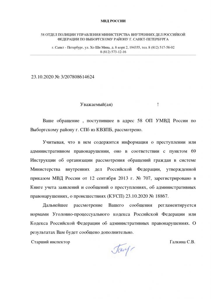 4.1.2.2. Обращения пользователей, содержащие указание на сообщение о составе преступления, предусмотренного Уголовным кодексом РФ, направляются лично заявителем (на бланке пользователя);