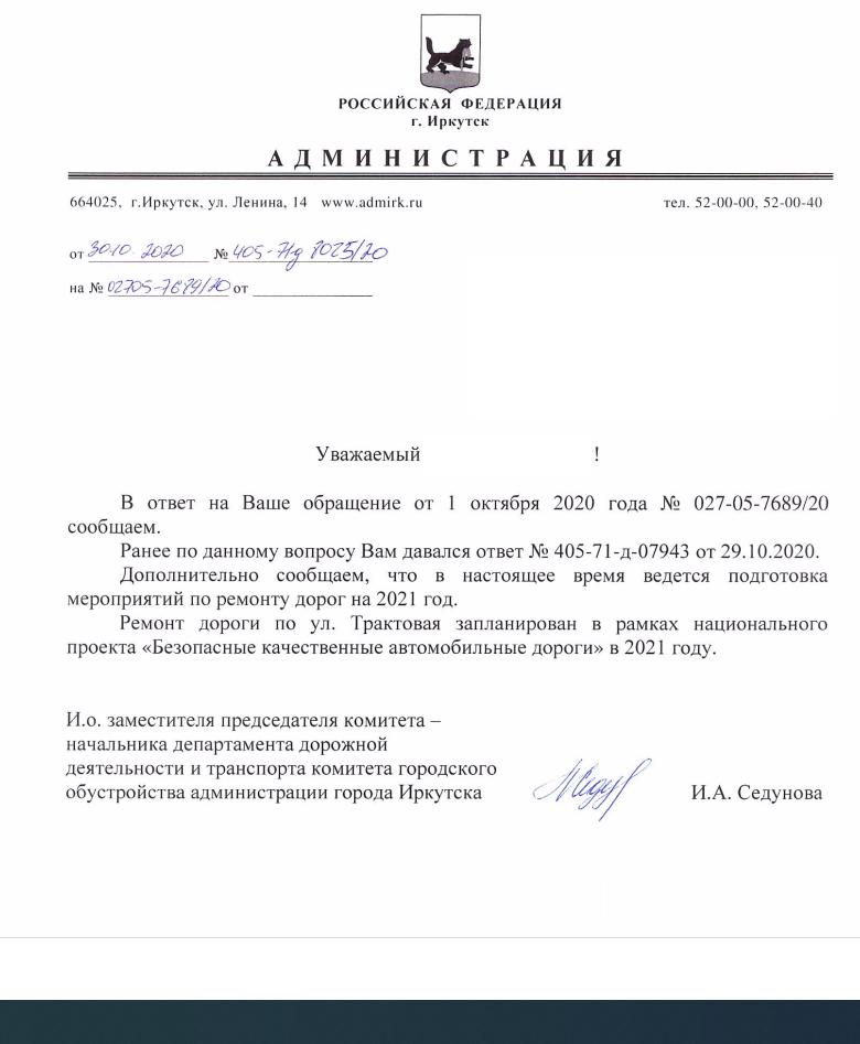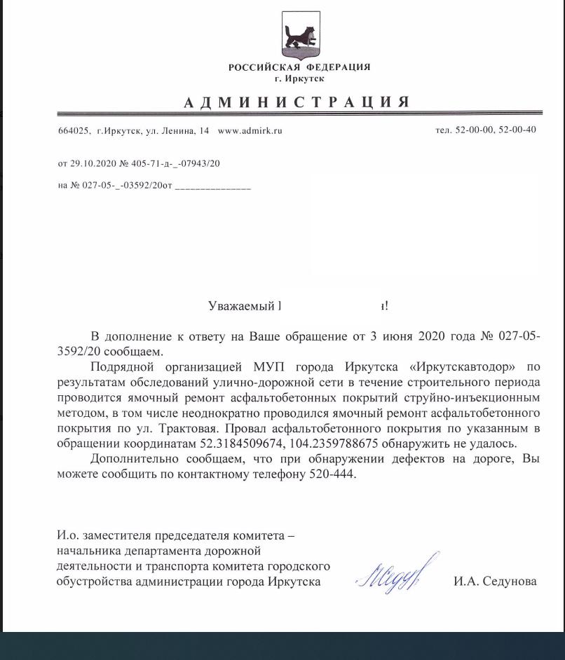 айГражданинОтправлено 28.09.2020: "Администрация города Иркутска"