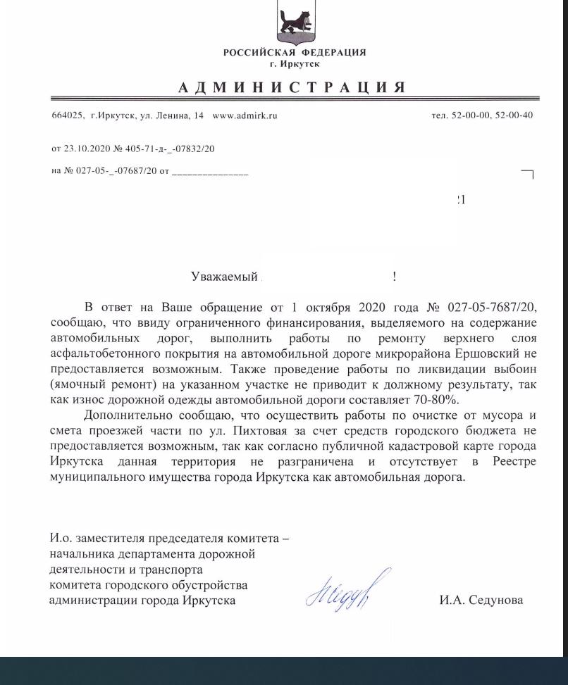 Отправлено 28.09.2020: "Администрация города Иркутска"