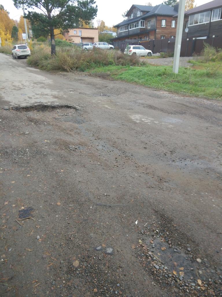 Здравствуйте, на дороге  около дома 1а ул. Пихтовая, г. Иркутск. Каждый год образуются ямы  и не одна. Данные ямы сильно снижают безопасность движения, дорога узкая и разъехаться очень сложно. Прошу выполнить временный ремонт данного участка до зимы, а также запланировать кап. ремонт данной доги\участка. Также прошу расчистить выезд с ул. Пихтовой - намыло большие бугры песка с гравием. Есть опасность ДТП из-за объезда по встречной полосе на повороте.