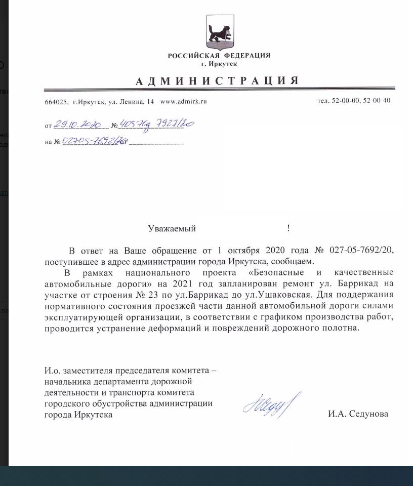 айГражданинОтправлено 29.09.2020: "Администрация города Иркутска"