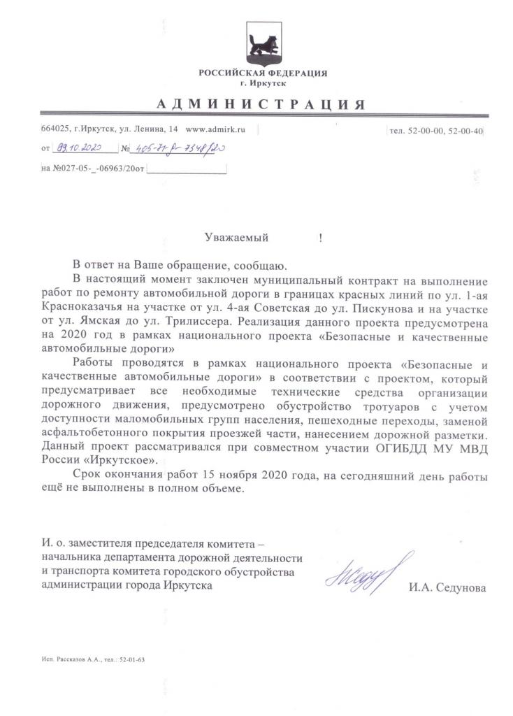 айГражданинОтправлено 30.09.2020: "Администрация города Иркутска"