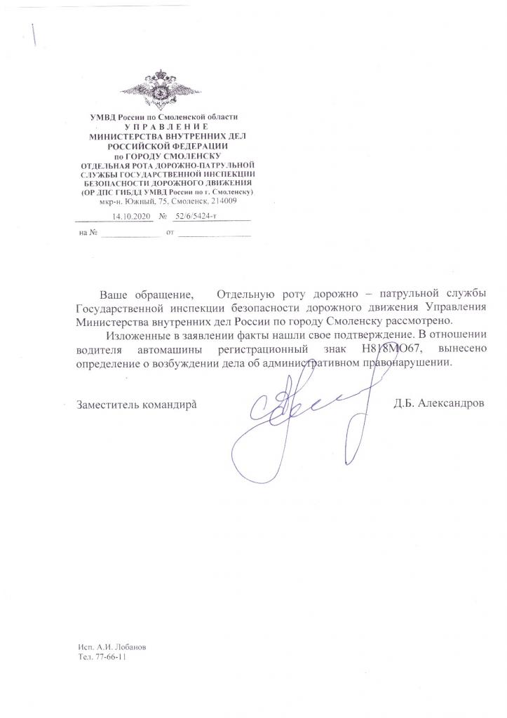 айГражданинОтправлено 02.10.2020: "УГИБДД УМВД России по Смоленской области"