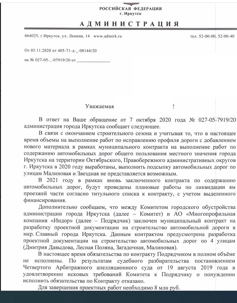 айГражданинОтправлено 05.10.2020: "Администрация города Иркутска"
