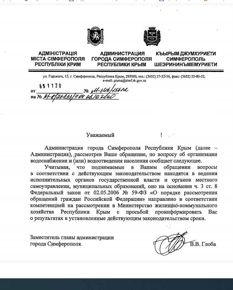 айГражданинОтправлено 05.11.2020: "ГУП РК "Вода Крыма""
