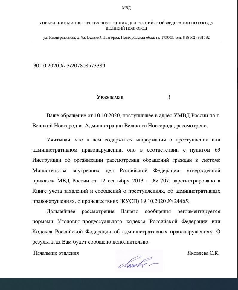 айГражданинОтправлено 10.10.2020: "Администрация г.Великий Новгород"