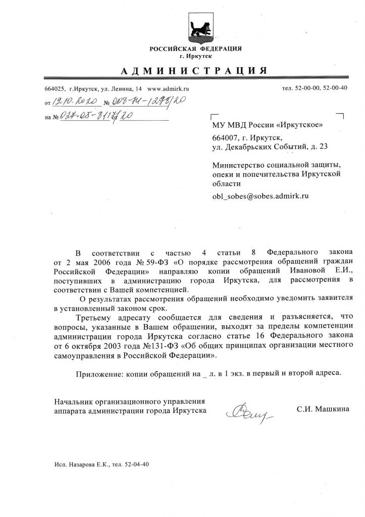 айГражданинОтправлено 11.10.2020: "Администрация города Иркутска"