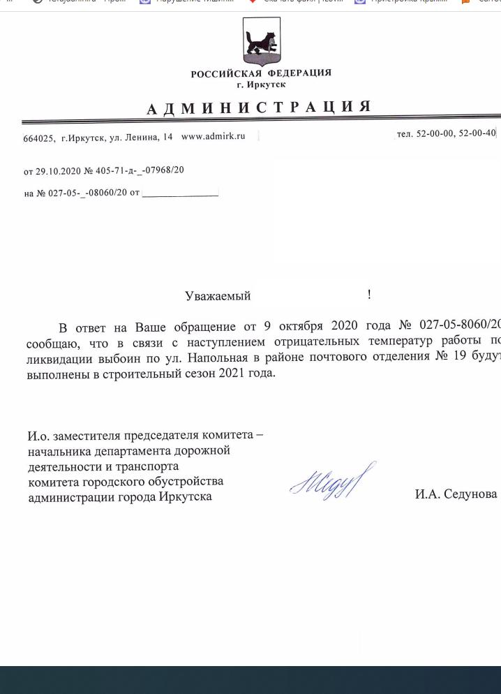 айГражданинОтправлено 15.10.2020: "Правительство Иркутской области"