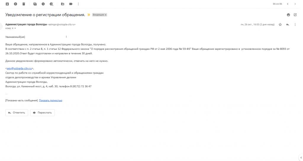 айГражданинОтправлено 23.10.2020: "Администрация города Вологды"