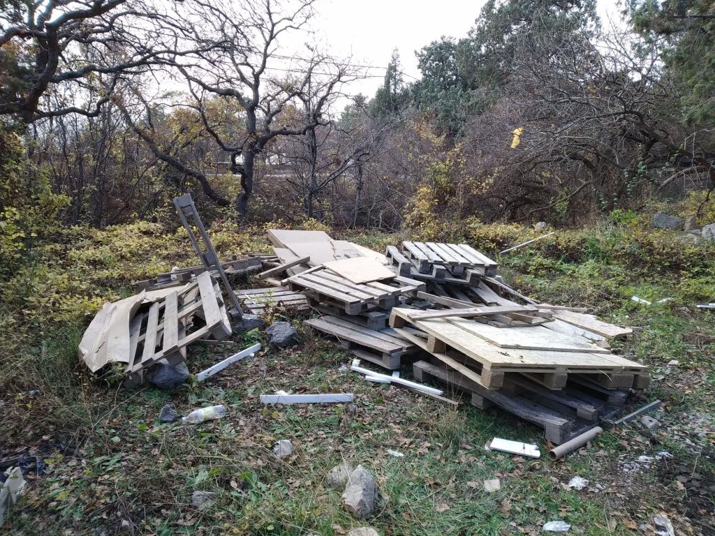 В Ласпи строится что то глобальное, строительная техника ездит каждые пять минут (если не чаще), видимо кто то сбросил паллеты и прочий хлам у турецкой поляны