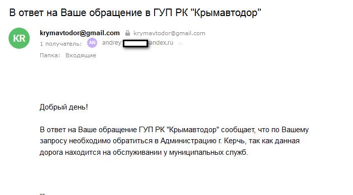 айГражданинОтправлено 04.01.2021: "Государственное унитарное предприятие Республики Крым «Крымавтодор» "
