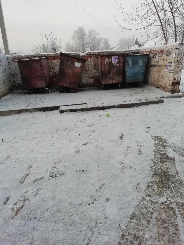 Сломанные мусорные баки возле дома 55 по улице Терешковой