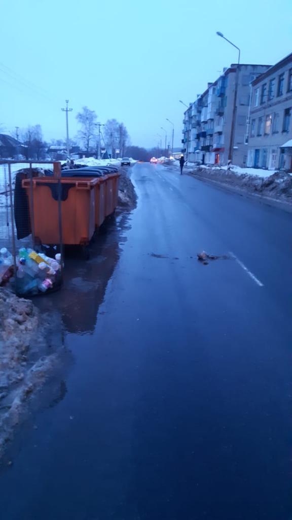 Юрий ЛевинУбрали мусорные баки с проезжей части дороги. Проблему можно закрыть.