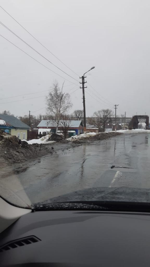 Ливневую канализацию, которую построили для отвода воды с проезжей части, не очищена от снега. Вода течет по дороге, а не в ливневки. И не очищен тротуар от снега.