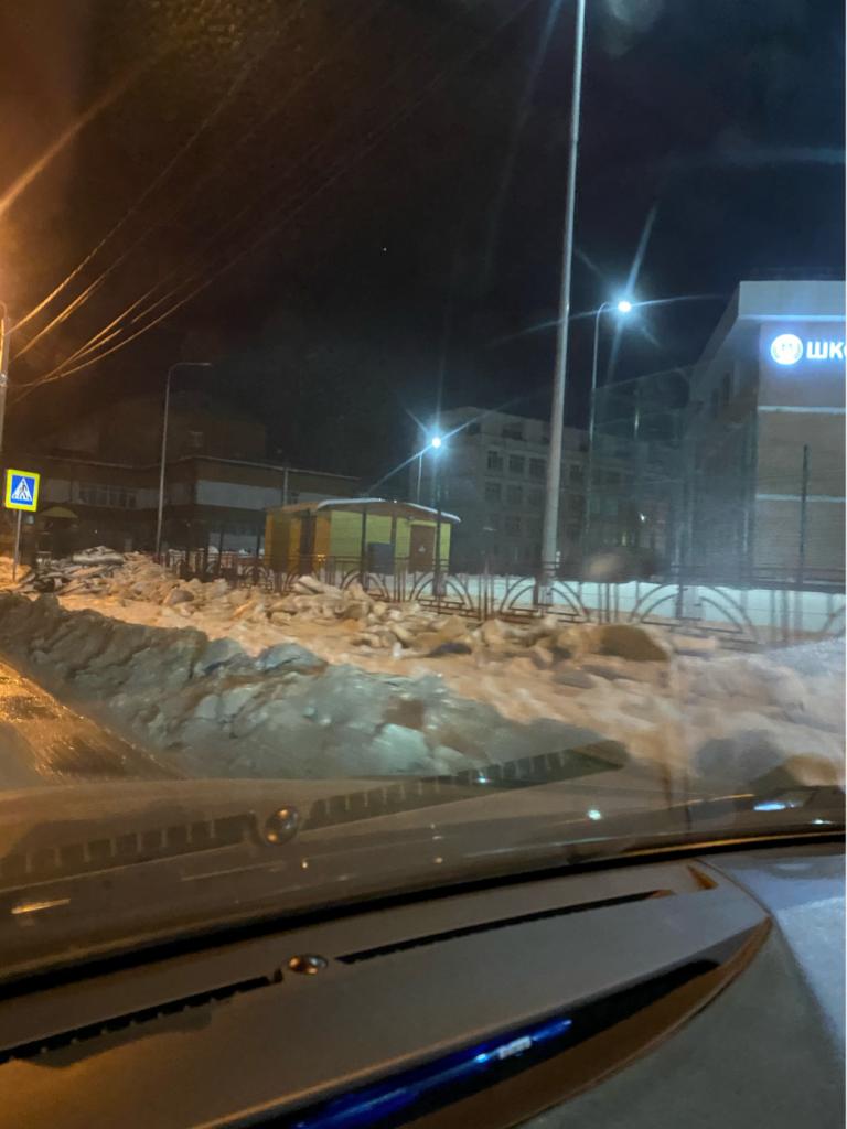 Снег после очистки дорожного полотна по улице Мелентьева складируются на газоны, тротуары и не вывозится более месяца