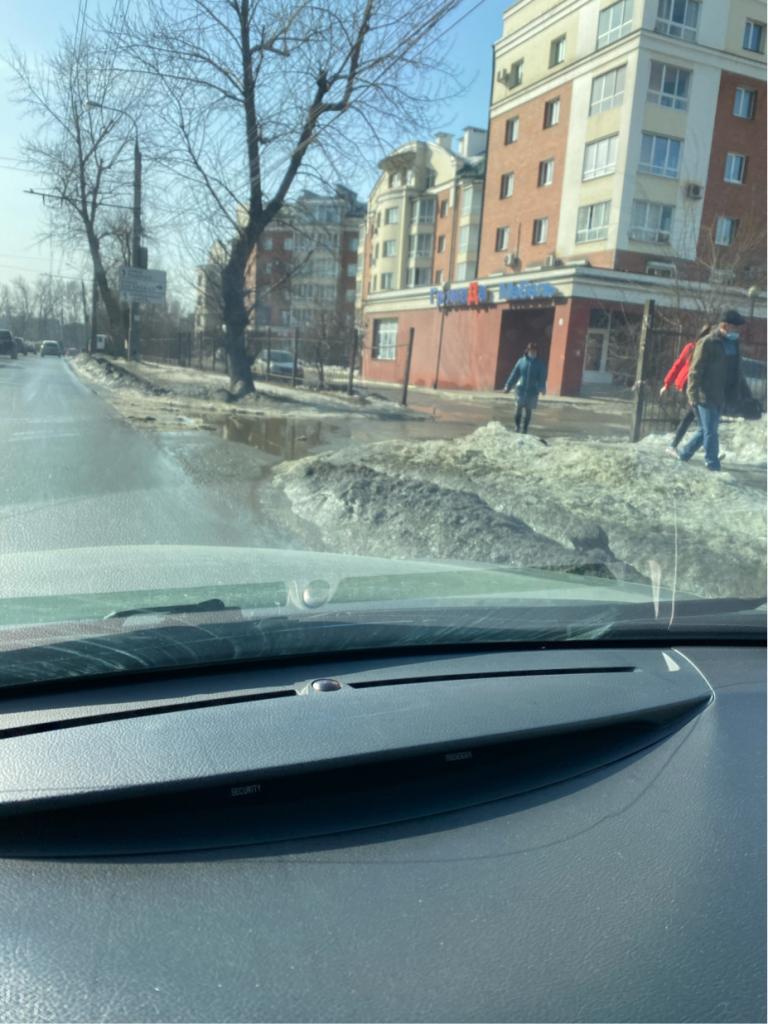 Снег после очистки улицы рабочего штаба хранится на площади дорожного полотна, на тротуарах, на газонах более двух месяцев