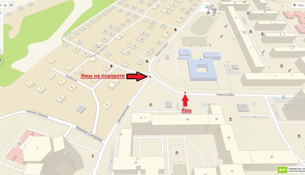Ямы на дороге. Перекрёсток ул.Вампилова - ул.Центральная.