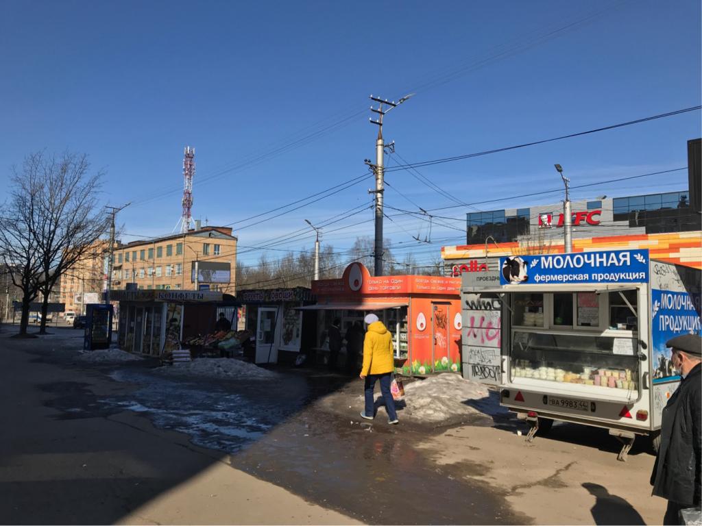 Прошу проверить законность установки торговых павильонов (на фото) на против ТЦ Макси ( 25 сентября) и демонтировать их в установленный законом срок. На фото видно как овощами и фруктами торгуют на открытом воздухе.