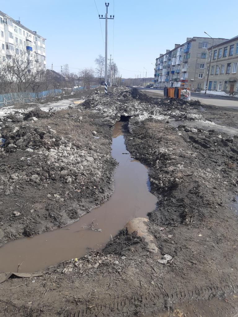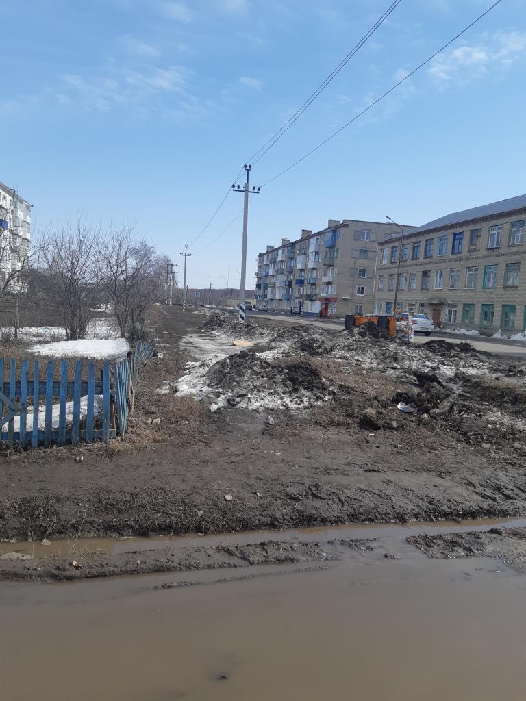 Ливневая (талая) вода стоит. Нужно прочистить снег и грязь,что бы вода могла дальше течь.