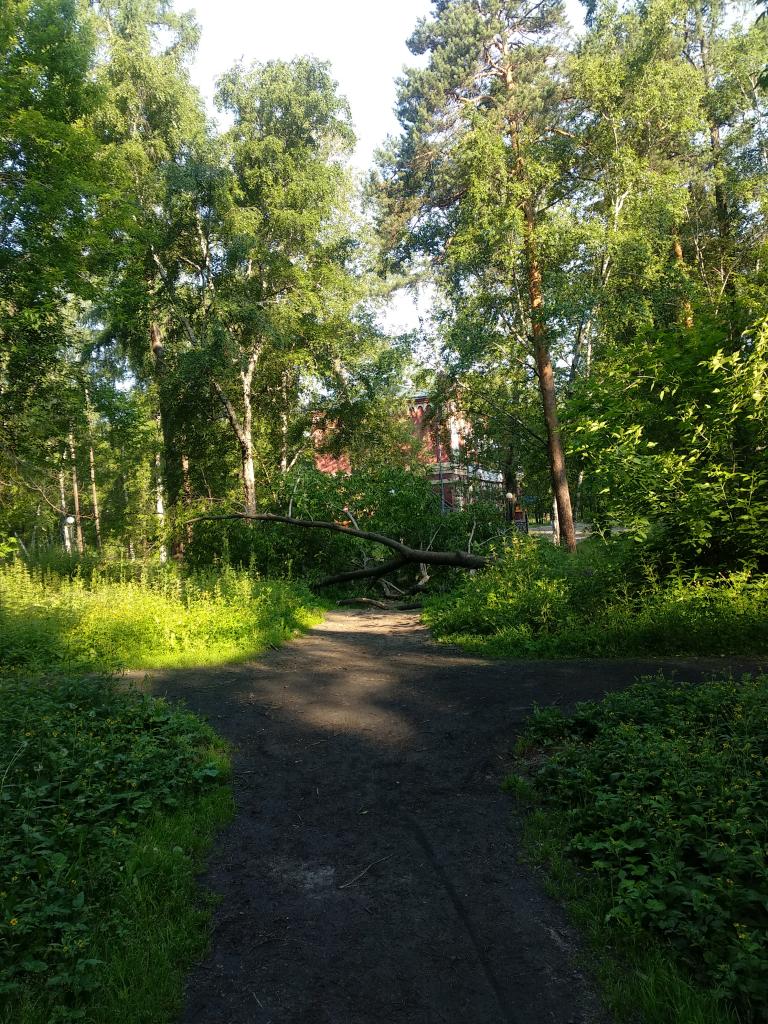 Рядом с домом детского творчества (Академика Образцова, 27/1) в Роще молодежной упало дерево. На пешеходную дорожку.