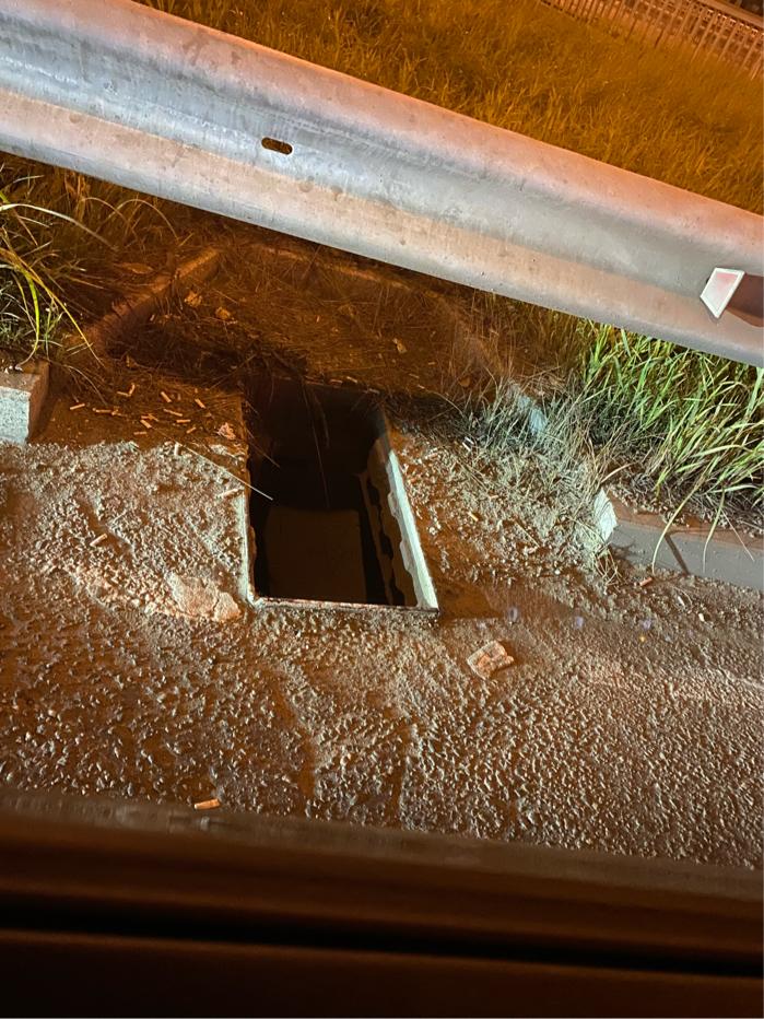 Открыты дождевые приямки, отсутствуют ограждения, знаки предупреждающие об опасности