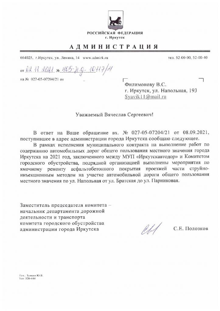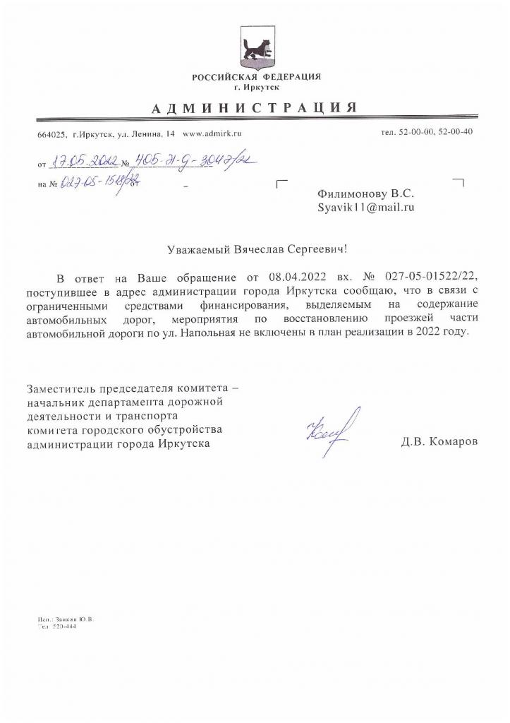 Отправлено 28.06.2022: "Администрация города Иркутска"