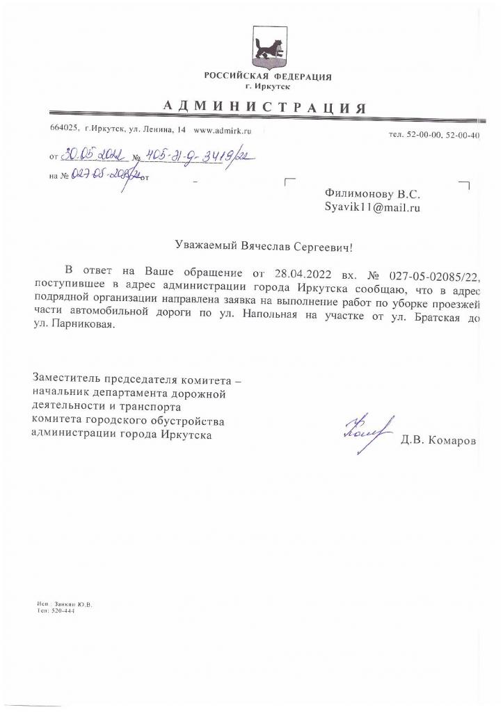 Отправлено 28.06.2022: "Администрация города Иркутска"
