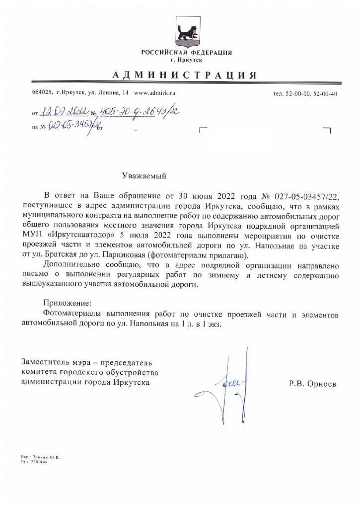 айГражданинОтправлено 11.08.2022: "Администрация города Иркутска"