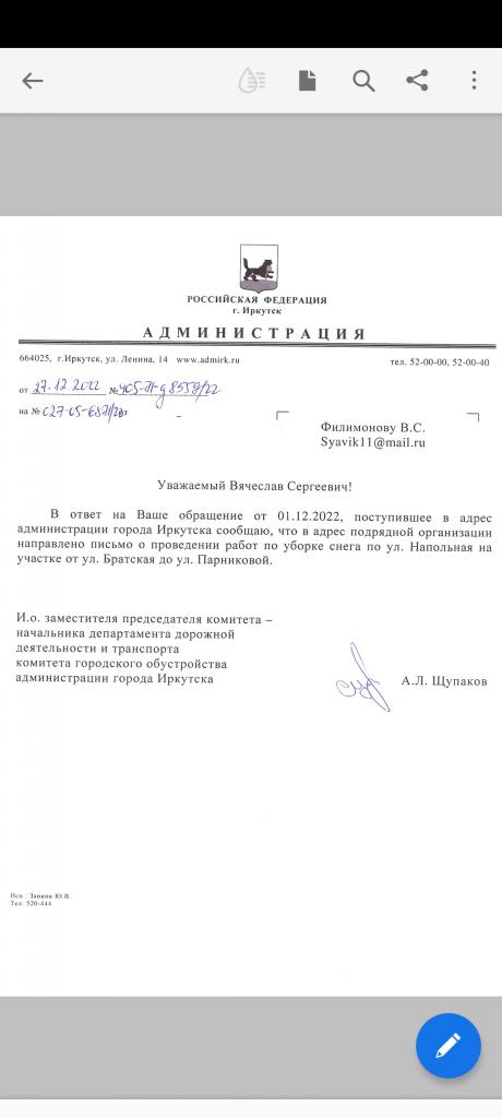 айГражданинОтправлено 30.01.2023: "Администрация города Иркутска"