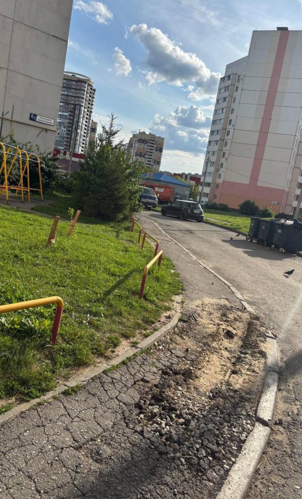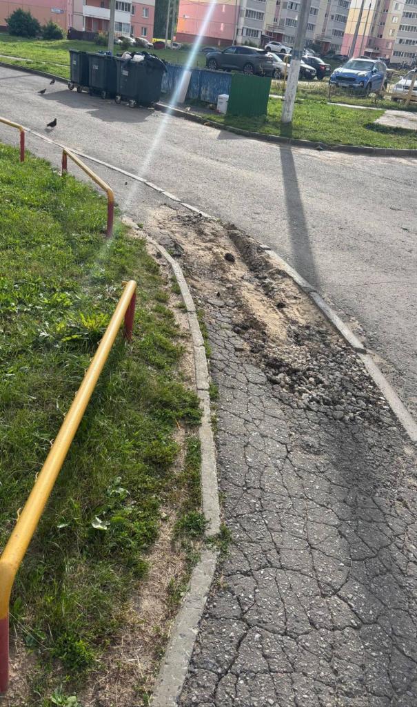 В результате регулярного заезда тяжёлых машин тротуар просел в землю, а прилегающее дорожное полотно получило повреждения. Это создаёт следующие проблемы: