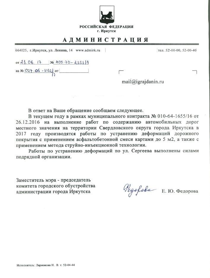 Отправлено 25.05.2017: "Администрация города Иркутска"
