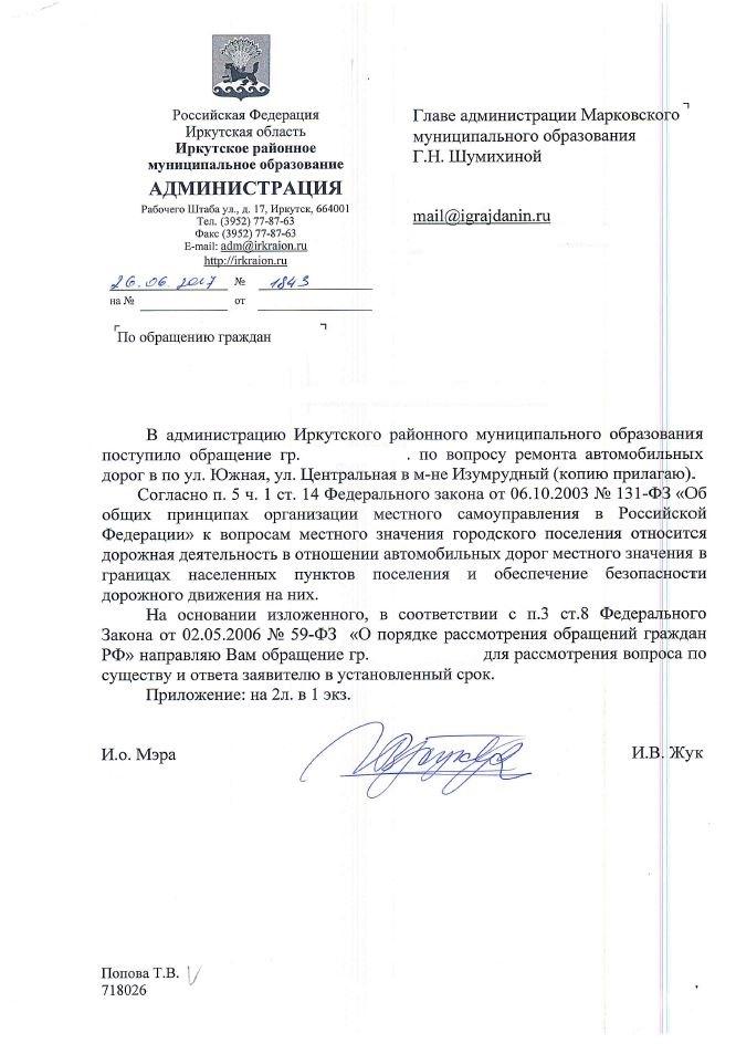 айГражданинОтправлено 25.05.2017: "Администрация города Иркутска"