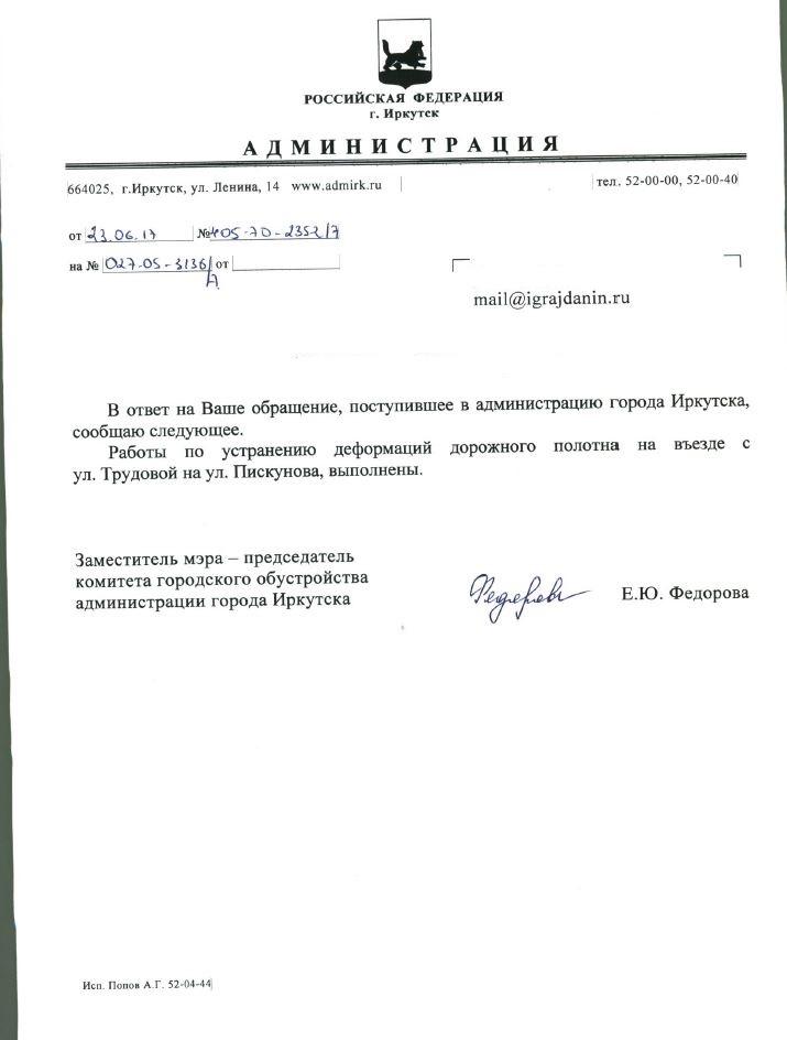 айГражданинОтправлено 25.05.2017: "Администрация города Иркутска"
