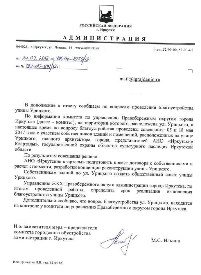 айГражданинОтправлено 25.05.2017: "Администрация города Иркутска"